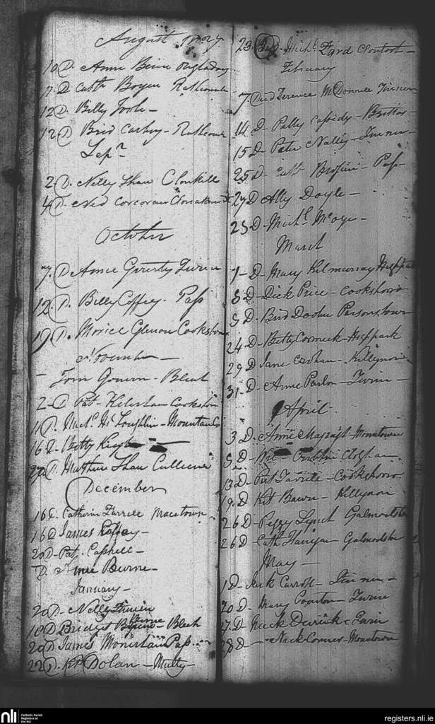 Taghmon; County of Westmeath; Diocese of Meath. Deaths, Aug. 1827 to May 1828
