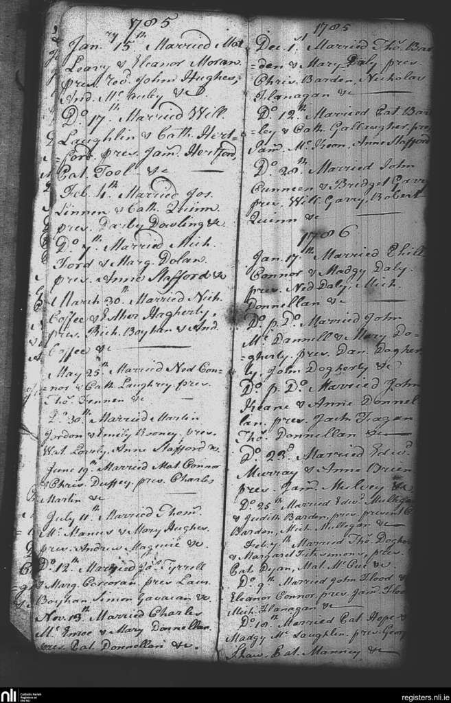 Taghmon; County of Westmeath; Diocese of Meath. Marriages, Jan. 1785 to Feb. 1786