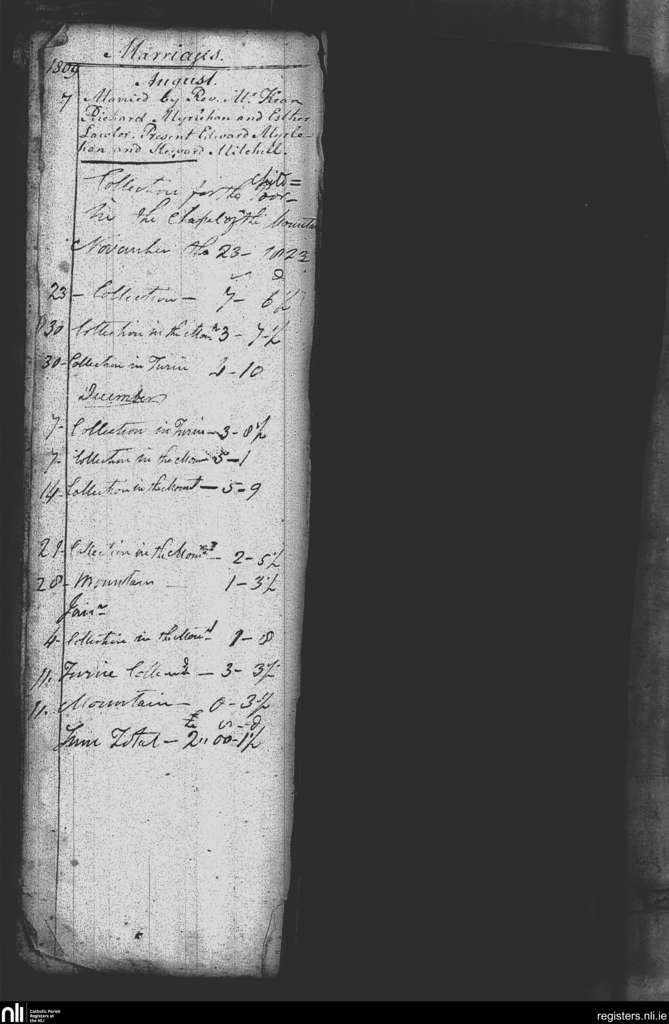 Taghmon; County of Westmeath; Diocese of Meath. Marriages, Aug. 1809 to Jan. 1810