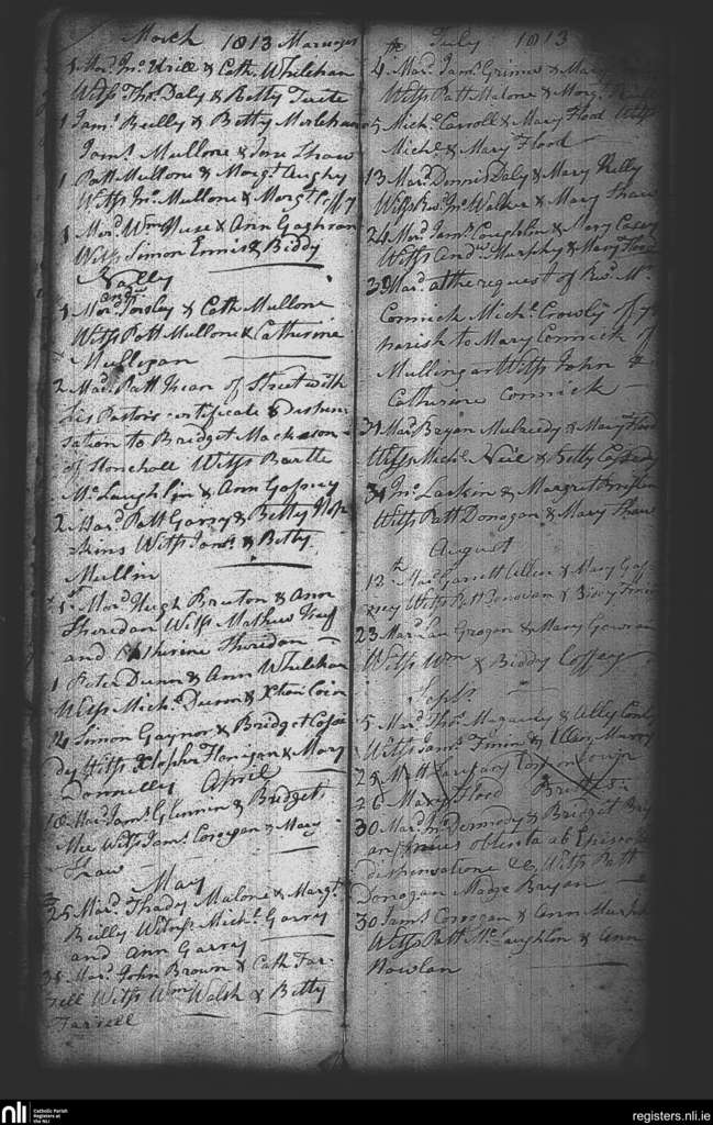 Taghmon; County of Westmeath; Diocese of Meath. Marriages, Mar. 1813 to Sep. 1813
