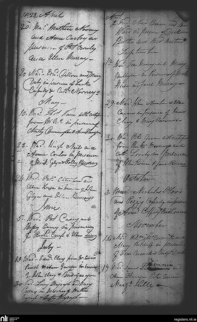 Taghmon; County of Westmeath; Diocese of Meath. Marriages, Apr. 1828 to Nov. 1828