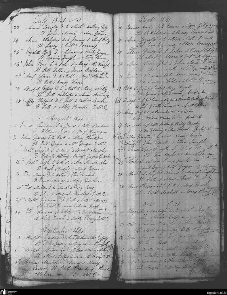 Taghmon; County of Westmeath; Diocese of Meath. Baptisms, July 1841 to Oct. 1841