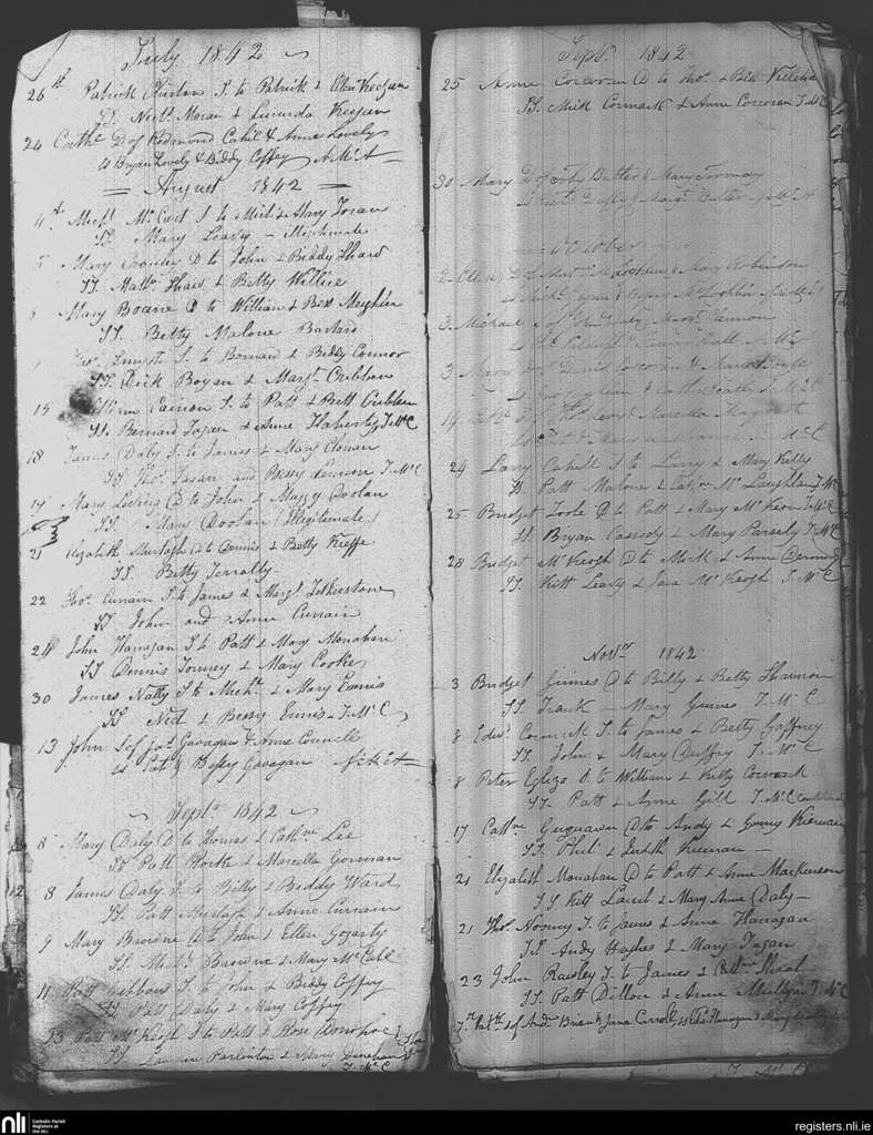Taghmon; County of Westmeath; Diocese of Meath. Baptisms, July 1842 to Nov. 1842
