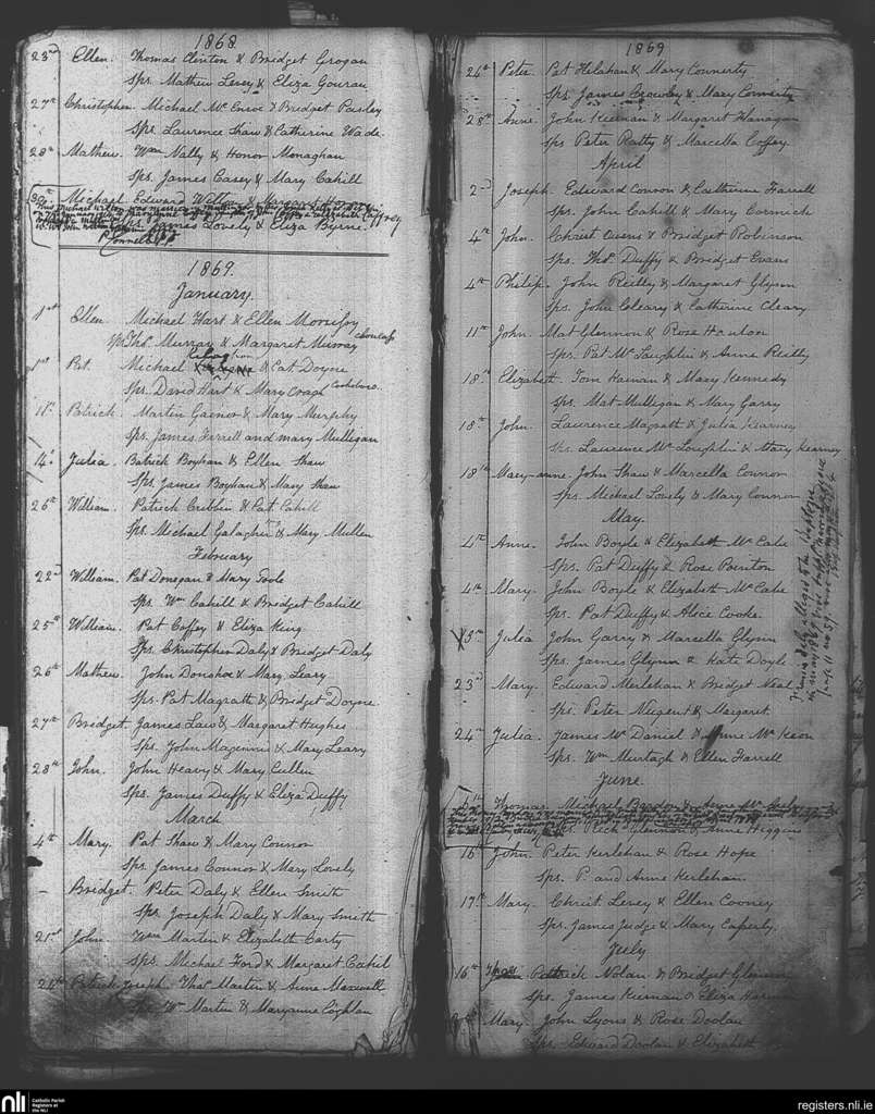 Taghmon; County of Westmeath; Diocese of Meath. Baptisms, Dec. 1868 to July 1869