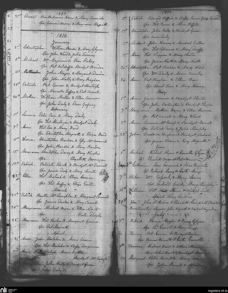 Taghmon; County of Westmeath; Diocese of Meath. Baptisms, Dec. 1869 to July 1870