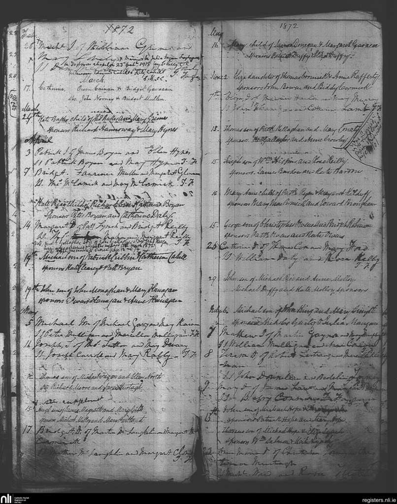 Taghmon; County of Westmeath; Diocese of Meath. Baptisms, Feb. 1872 to July 1872