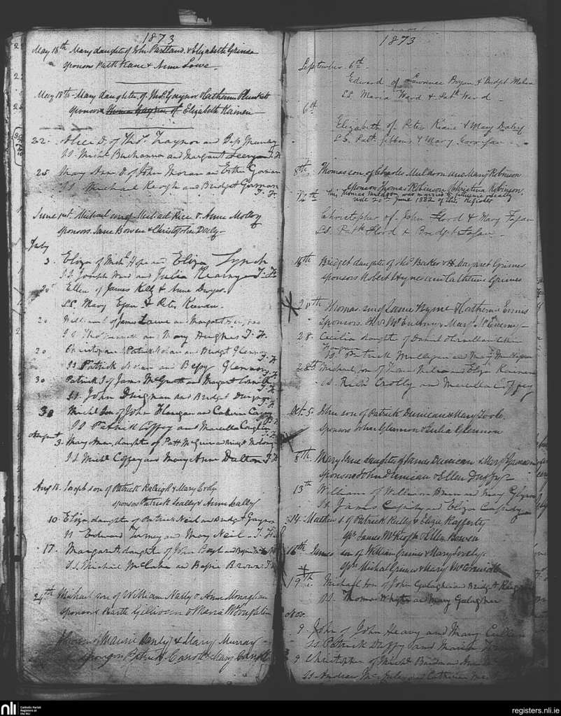 Taghmon; County of Westmeath; Diocese of Meath. Baptisms, May 1873 to Nov. 1873