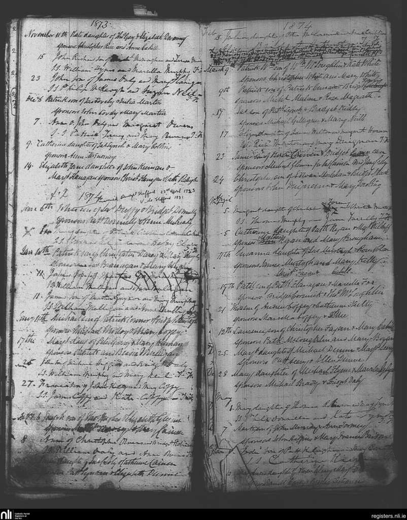 Taghmon; County of Westmeath; Diocese of Meath. Baptisms, Nov. 1873 to May 1874