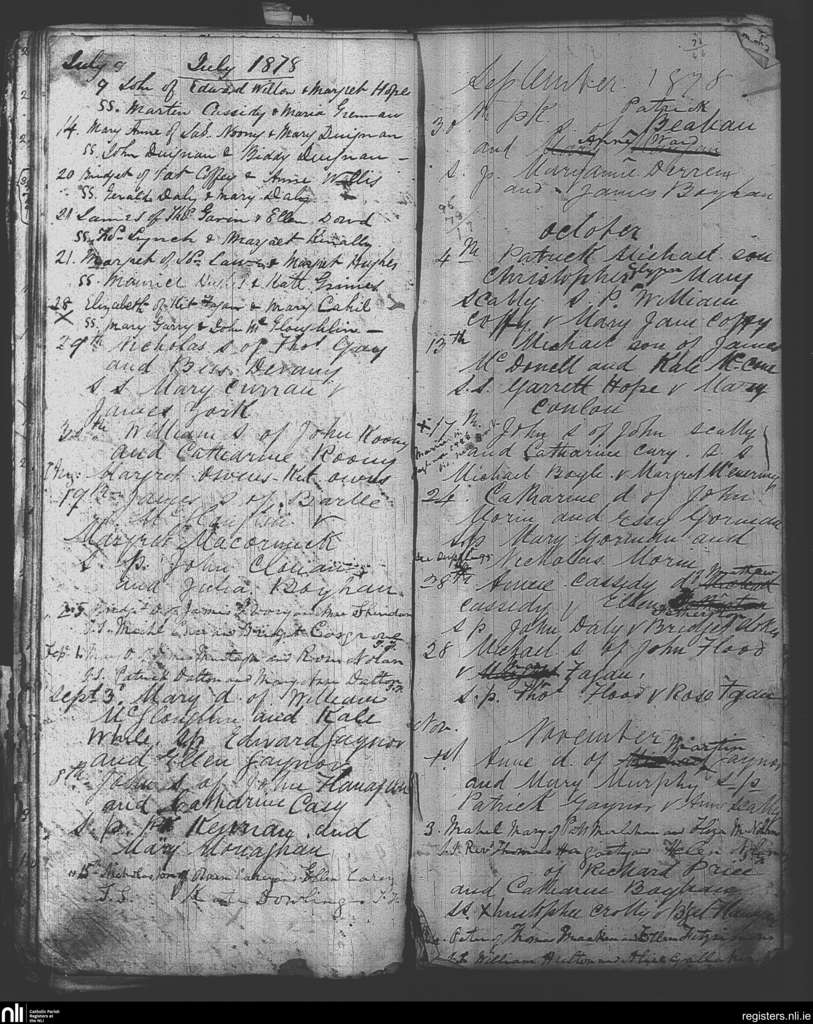Taghmon; County of Westmeath; Diocese of Meath. Baptisms, July 1878 to Nov. 1878