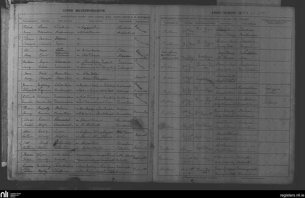 Taghmon; County of Westmeath; Diocese of Meath. Marriages, Nov. 1872 to Nov. 1873