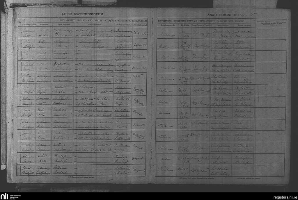 Taghmon; County of Westmeath; Diocese of Meath. Marriages, Jan. 1874 to Apr. 1875