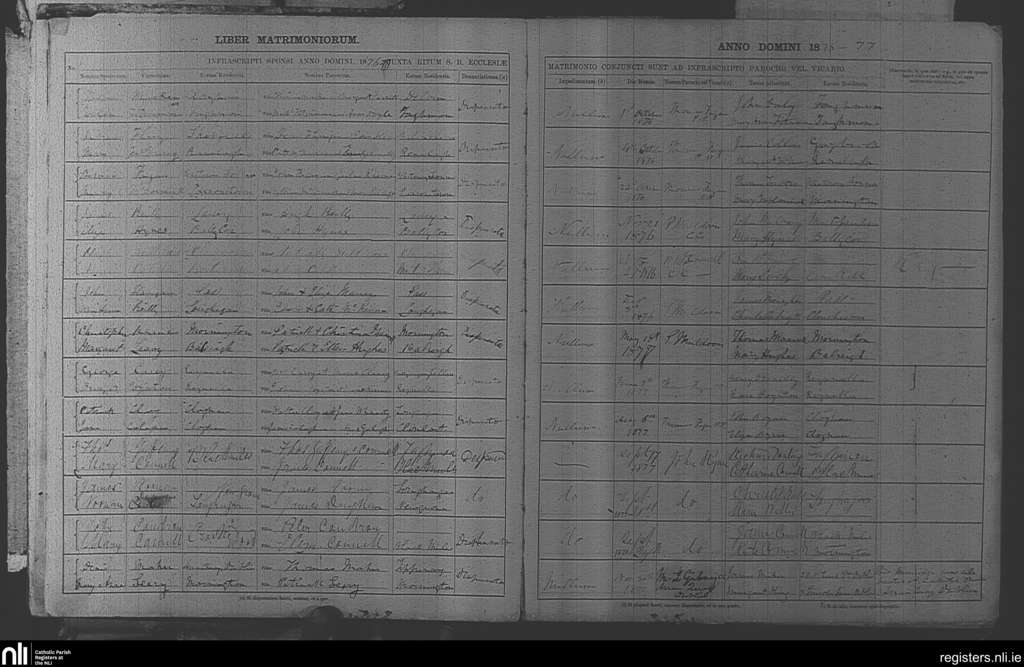 Taghmon; County of Westmeath; Diocese of Meath. Marriages, Oct. 1876 to Nov. 1877