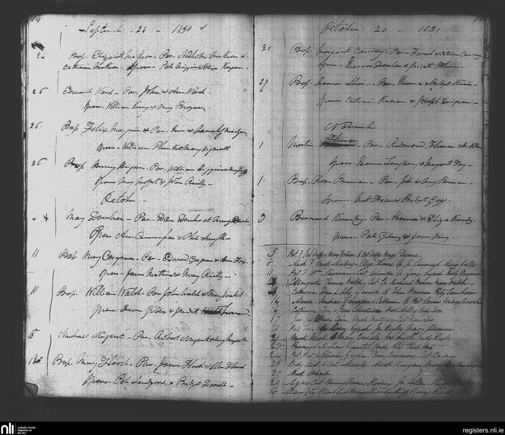 Trim; County of Meath; Diocese of Meath. Baptisms, Sep. 1830 to Nov. 1830