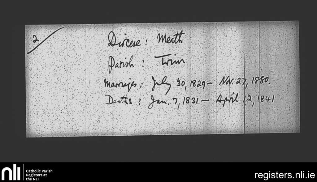Trim; County of Meath; Diocese of Meath. Marriages, Deaths