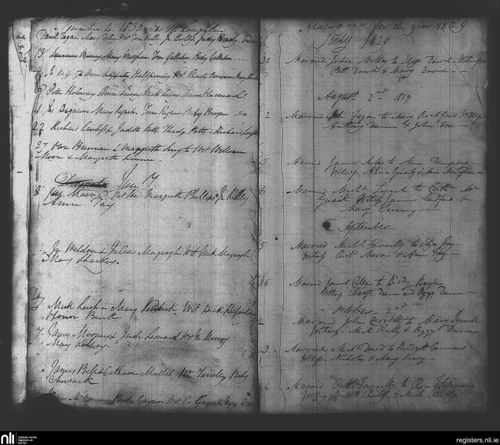 Trim; County of Meath; Diocese of Meath. Marriages, Jan. 1829 to Nov. 1830