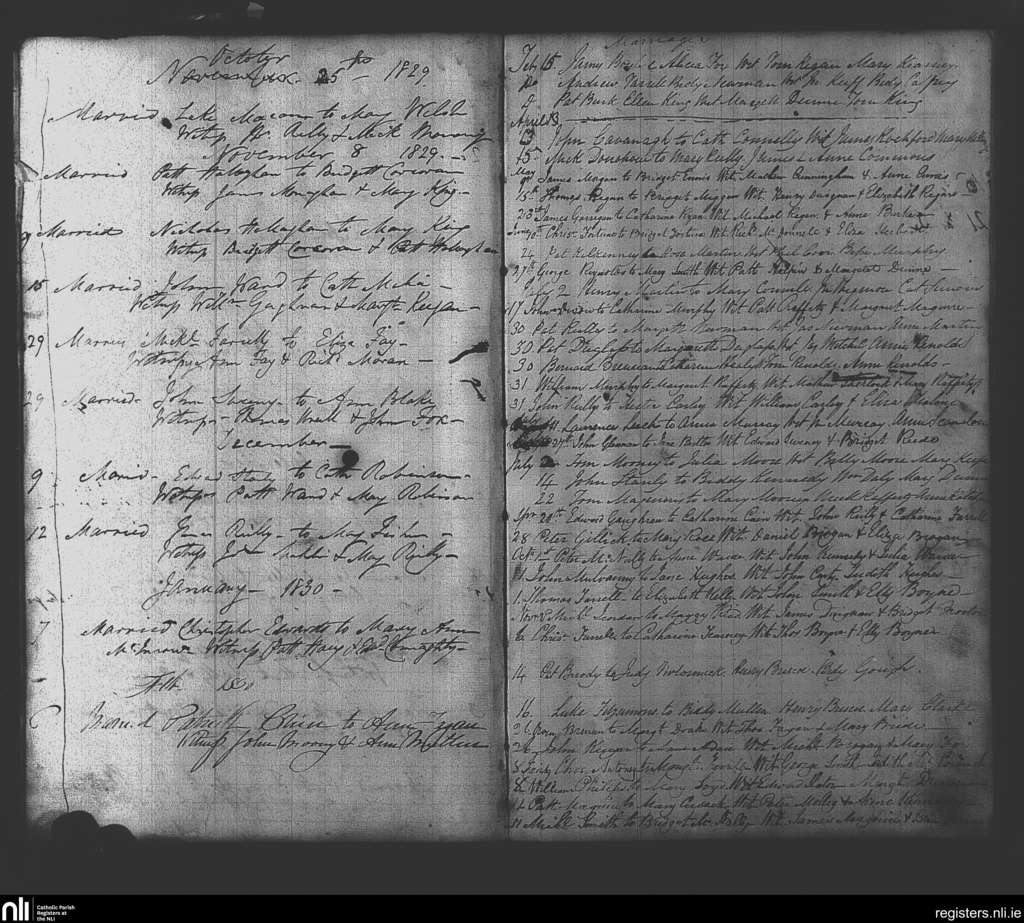 Trim; County of Meath; Diocese of Meath. Marriages, Oct. 1829 to Nov. 1830