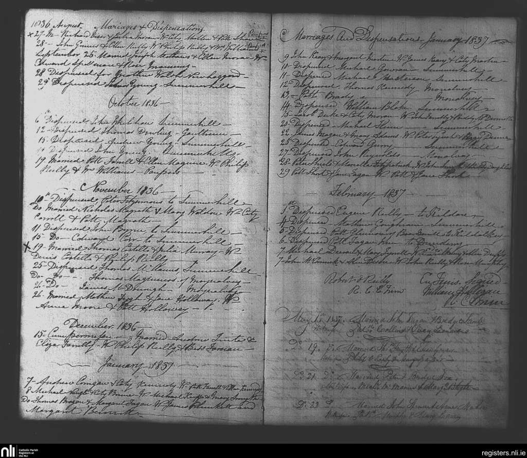Trim; County of Meath; Diocese of Meath. Marriages, Aug. 1836 to May 1837