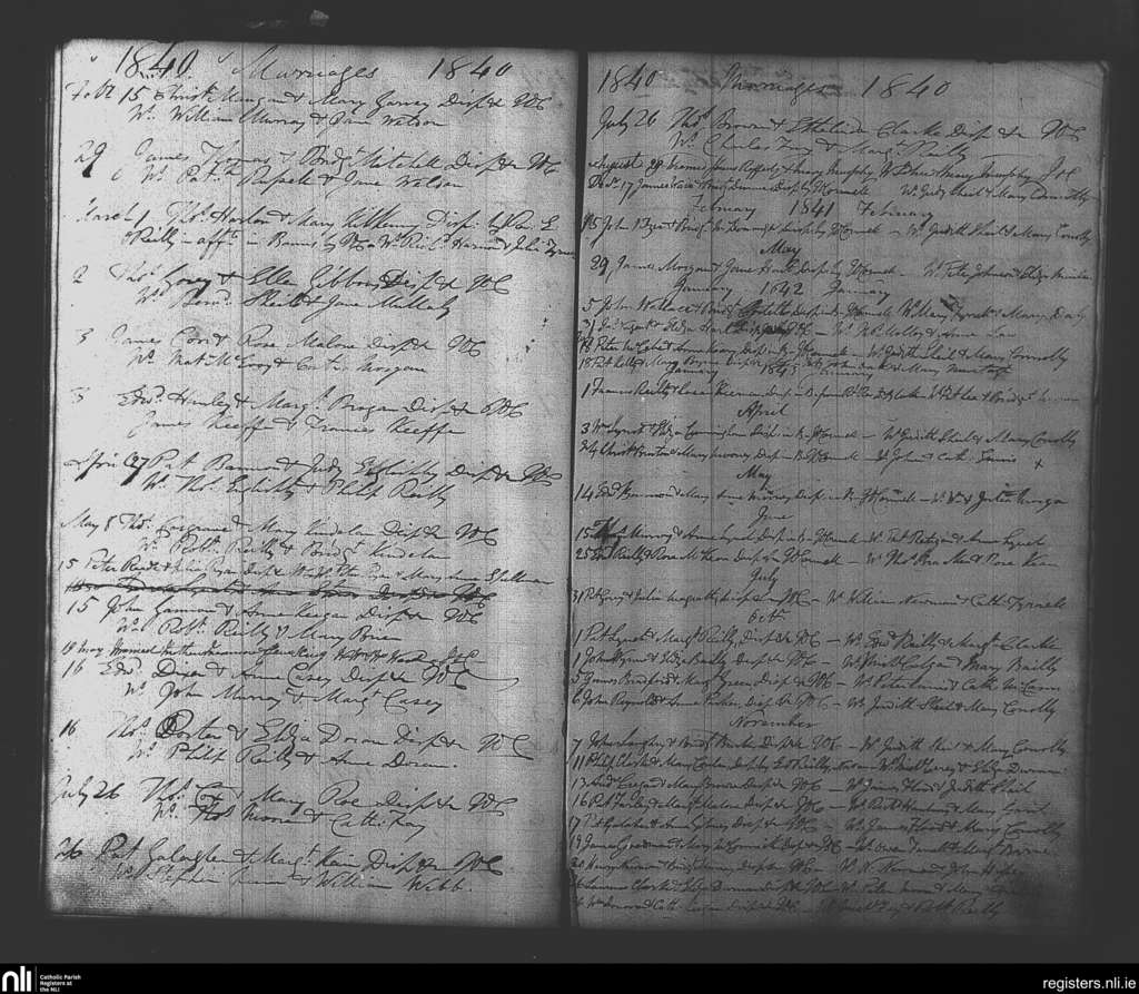 Trim; County of Meath; Diocese of Meath. Marriages, Feb. 1840 to Nov. 1842