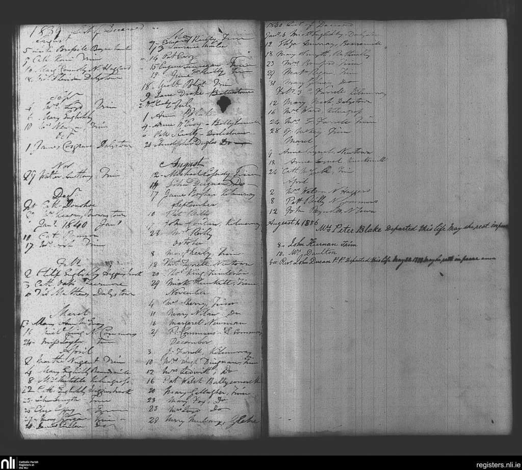 Trim; County of Meath; Diocese of Meath. Deaths, Aug. 1839 to Aug. 1886