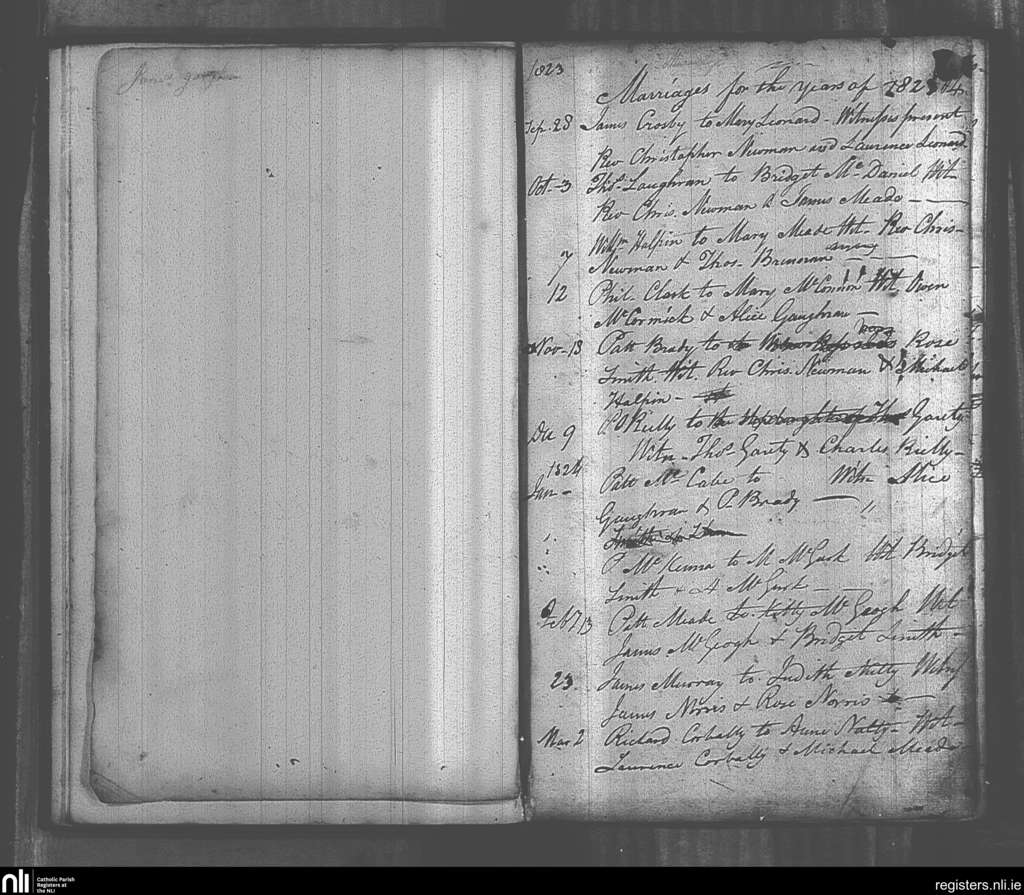 Lobinstown; County of Meath; Diocese of Meath. Marriages, Sep. 1823 to Mar. 1824