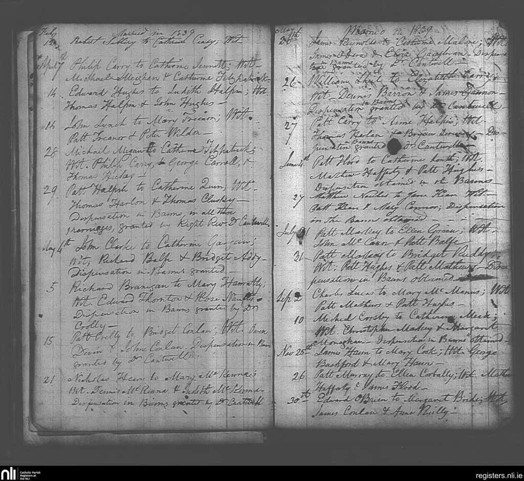 Lobinstown; County of Meath; Diocese of Meath. Marriages, Feb. 1839 to Nov. 1839