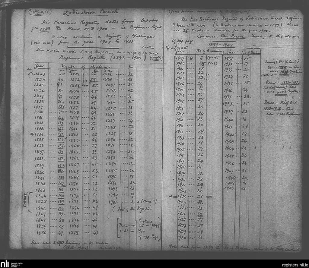 Lobinstown; County of Meath; Diocese of Meath. Baptisms