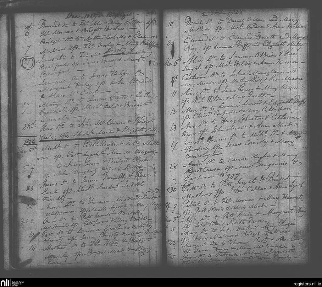 Lobinstown; County of Meath; Diocese of Meath. Baptisms, Dec. 1827 to Apr. 1828