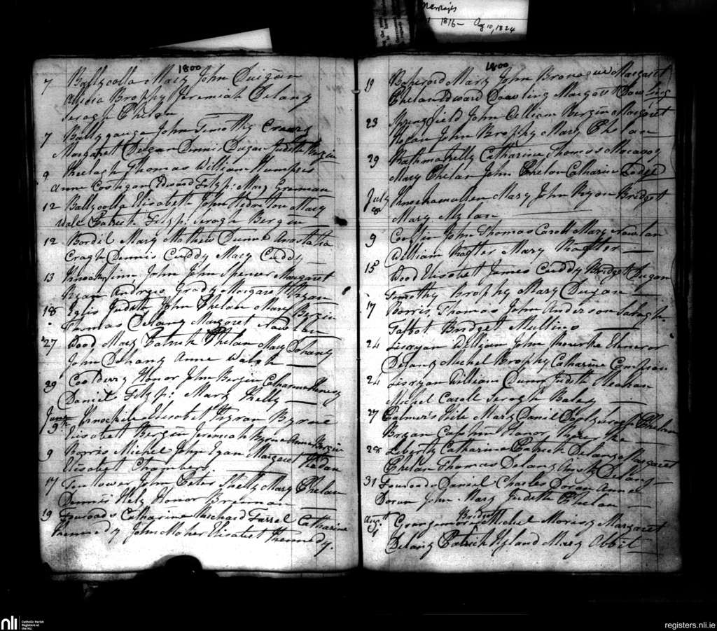 Aghaboe; County of Laois; Diocese of Ossory. Baptisms, May 1800 to Aug. 1800