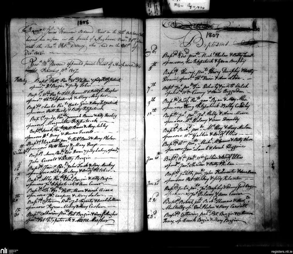 Aghaboe; County of Laois; Diocese of Ossory. Baptisms, Dec. 1806 to Feb. 1807