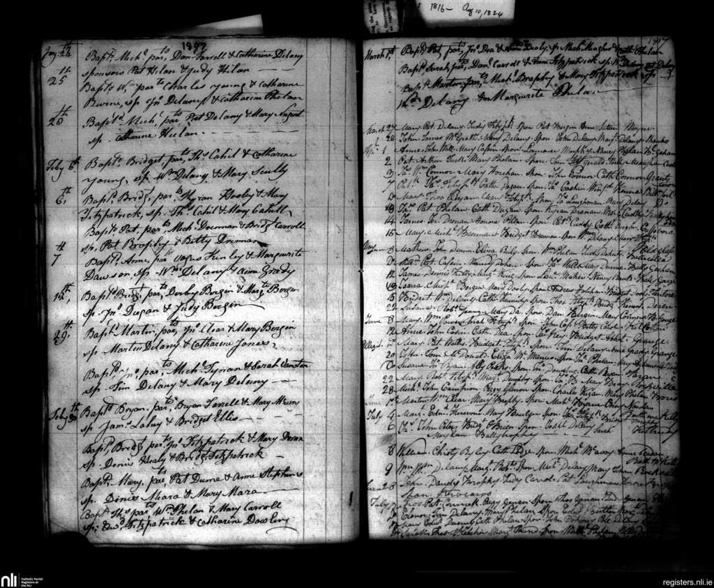 Aghaboe; County of Laois; Diocese of Ossory. Baptisms, Jan. 1807 to Aug. 1807