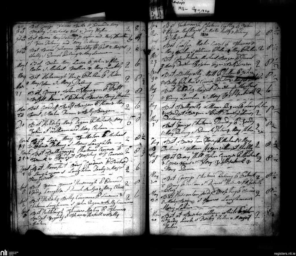 Aghaboe; County of Laois; Diocese of Ossory. Baptisms, Feb. 1810 to May 1810