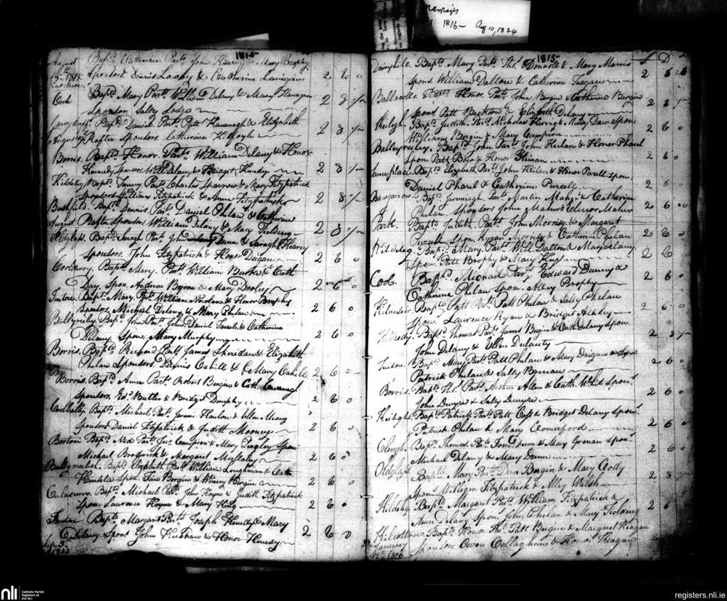 Aghaboe; County of Laois; Diocese of Ossory. Baptisms, Aug. 1815 to Jan. 1816