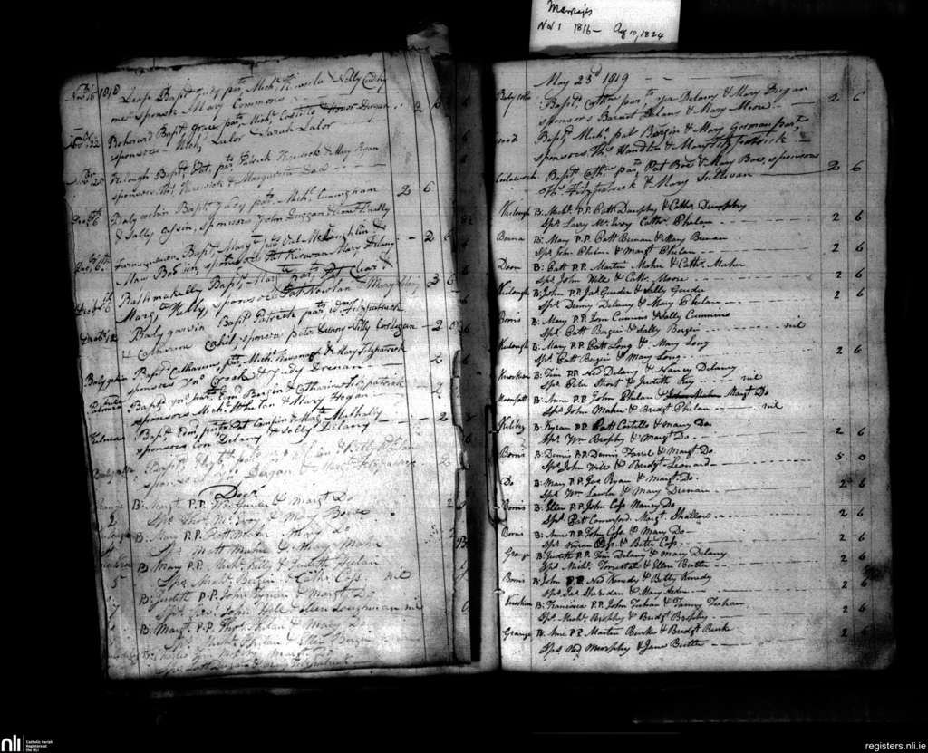 Aghaboe; County of Laois; Diocese of Ossory. Baptisms, Nov. 1818 to May 1819
