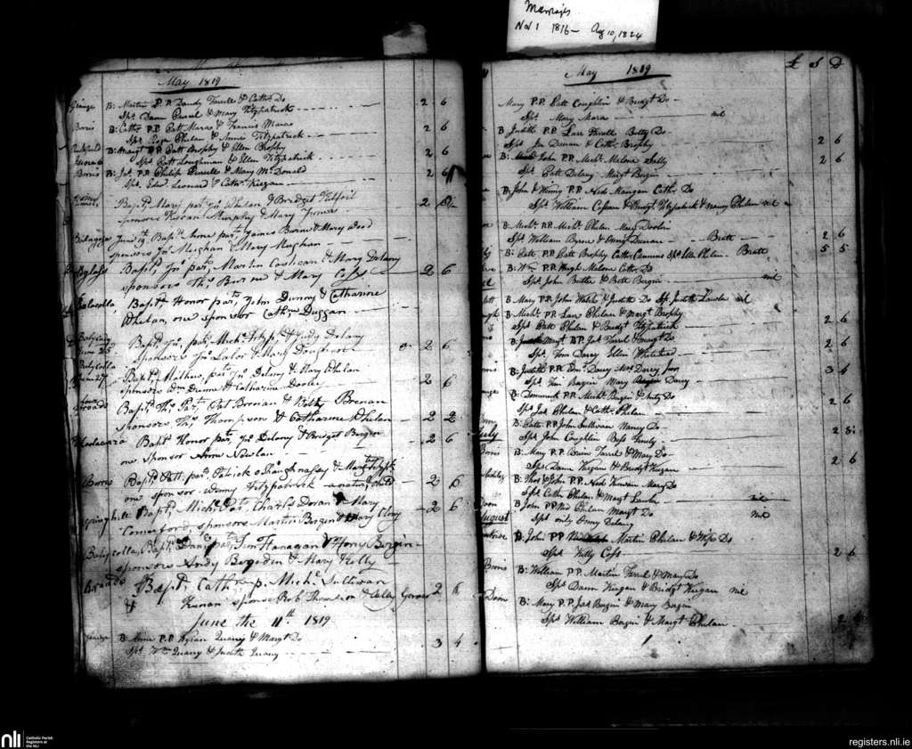 Aghaboe; County of Laois; Diocese of Ossory. Baptisms, May 1819 to Aug. 1819
