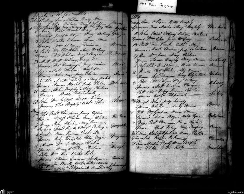 Aghaboe; County of Laois; Diocese of Ossory. Baptisms, Feb. 1824 to Mar. 1824