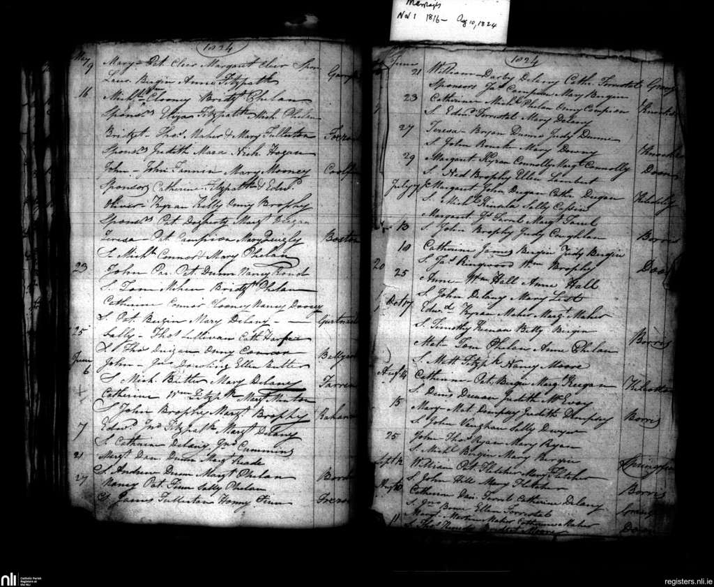 Aghaboe; County of Laois; Diocese of Ossory. Baptisms, May 1824 to Oct. 1824