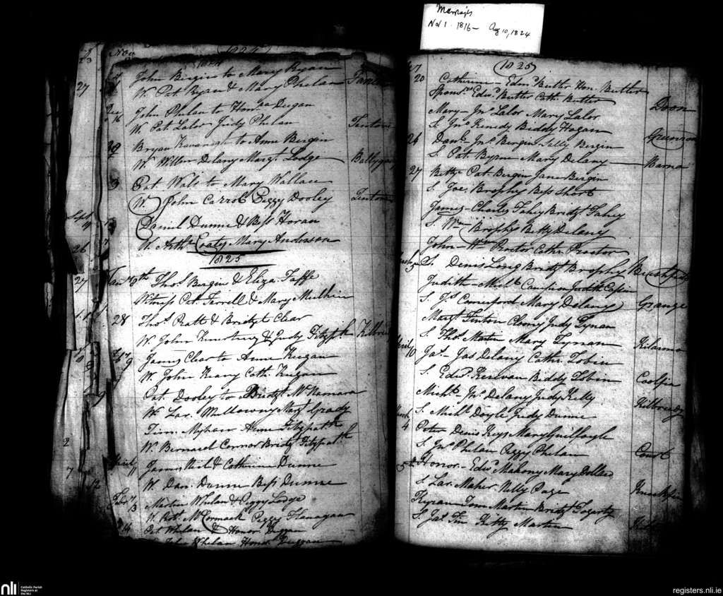 Aghaboe; County of Laois; Diocese of Ossory. Baptisms, Jan. 1825 to Dec. 1825