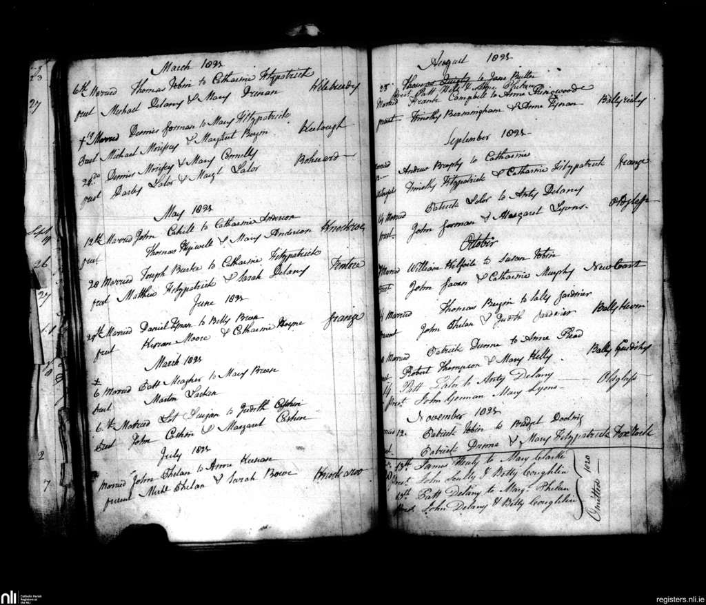 Aghaboe; County of Laois; Diocese of Ossory. Marriages, Mar. 1821 to Nov. 1821