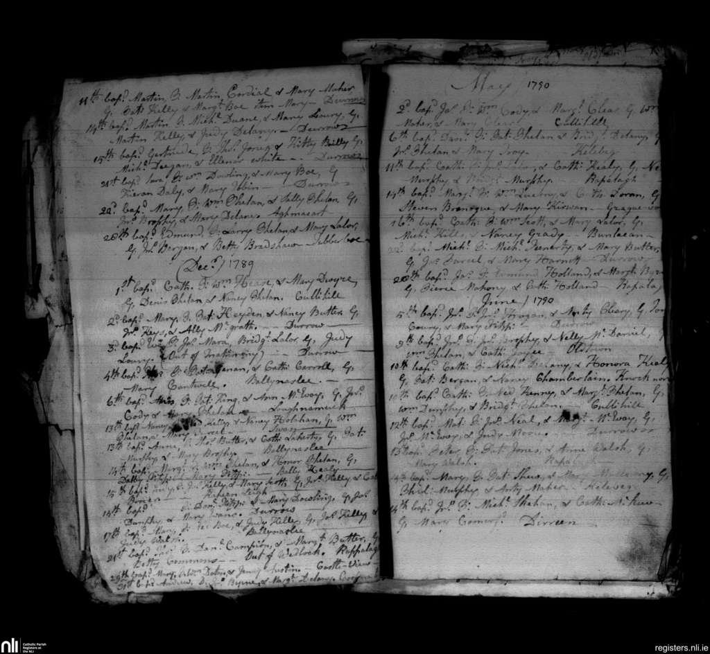Durrow; County of Laois, Kilkenny; Diocese of Ossory. Baptisms, Nov. 1789 to June 1790