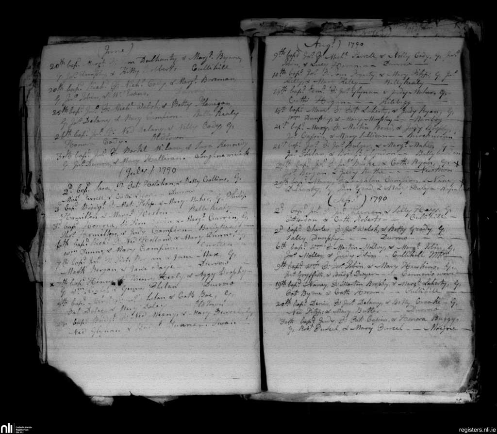Durrow; County of Laois, Kilkenny; Diocese of Ossory. Baptisms, June 1790 to Sep. 1790