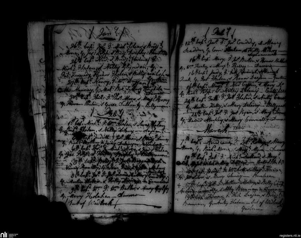 Durrow; County of Laois, Kilkenny; Diocese of Ossory. Baptisms, Jan. 1804 to Mar. 1804