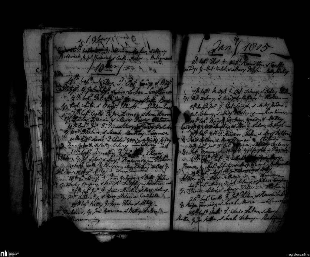 Durrow; County of Laois, Kilkenny; Diocese of Ossory. Baptisms, Nov. 1804 to Jan. 1805