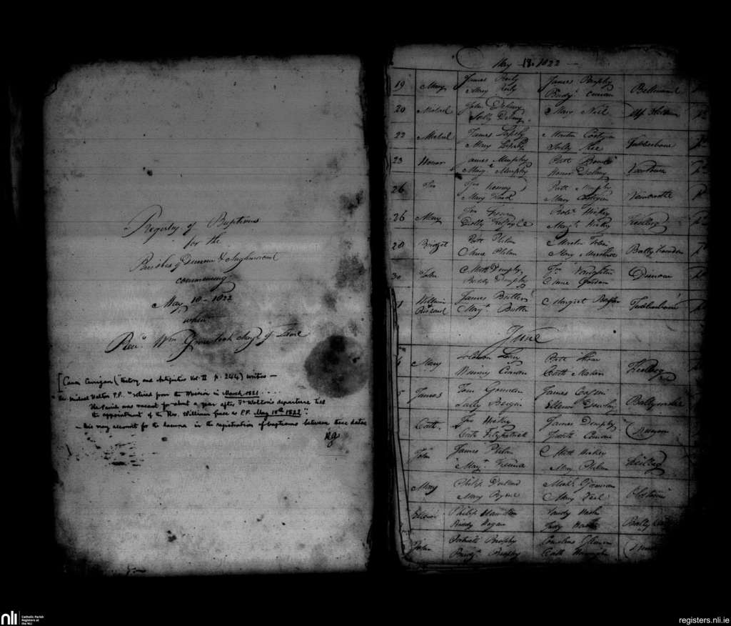 Durrow; County of Kilkenny, Laois; Diocese of Ossory. Baptisms, May 1822 to June 1822