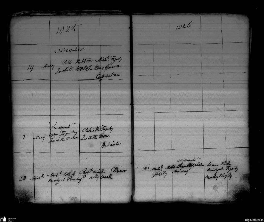Durrow; County of Kilkenny, Laois; Diocese of Ossory. Baptisms, Nov. 1825 to Nov. 1826