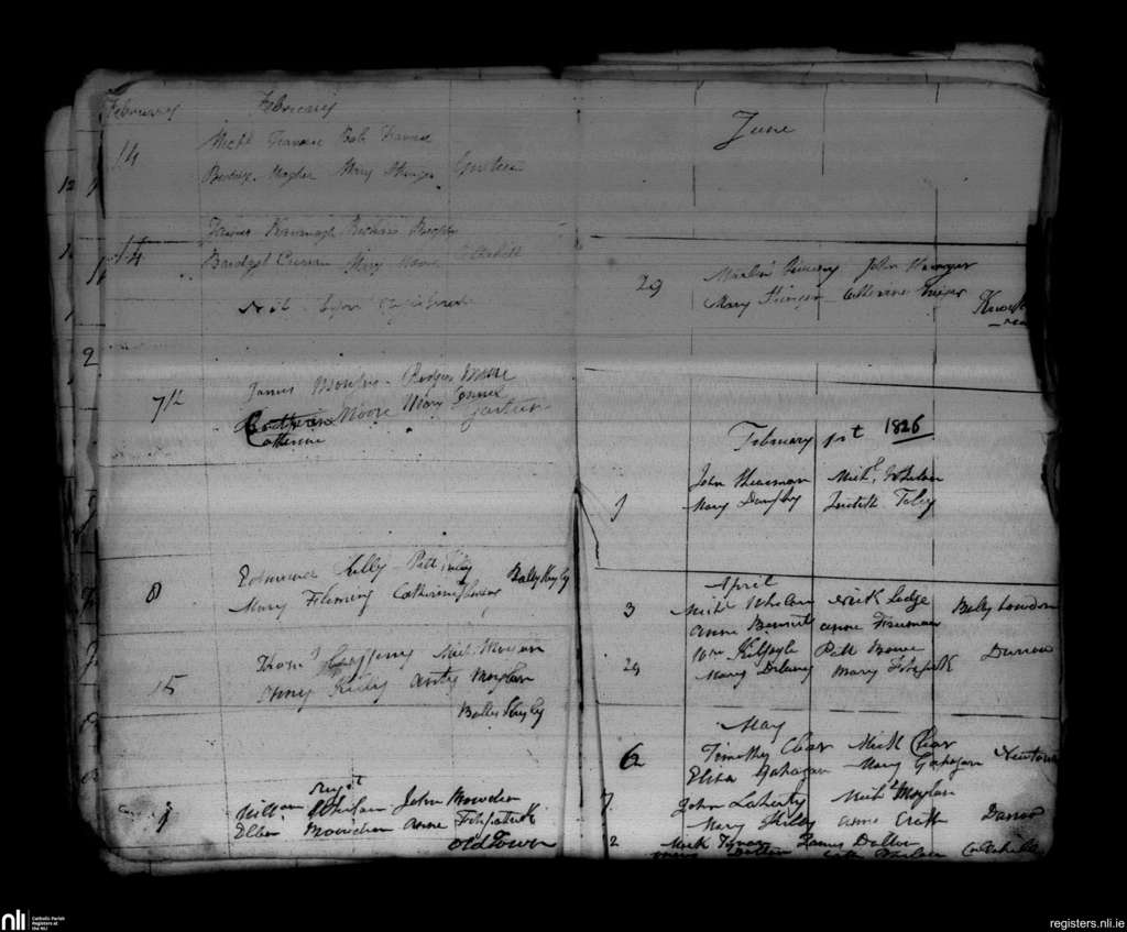 Durrow; County of Kilkenny, Laois; Diocese of Ossory. Marriages, Feb. 1825 to May 1826