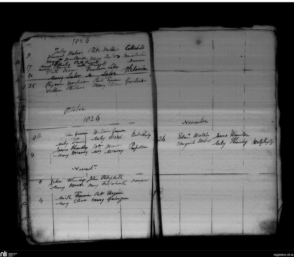 Durrow; County of Kilkenny, Laois; Diocese of Ossory. Marriages, July 1826 to Nov. 1826