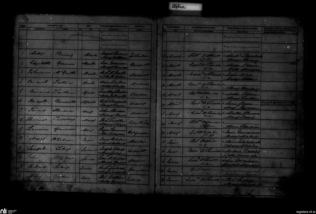 Durrow; County of Kilkenny, Laois; Diocese of Ossory. Baptisms, Mar. 1857 to June 1857
