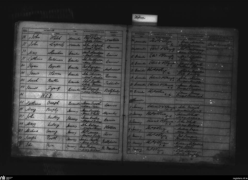 Durrow; County of Kilkenny, Laois; Diocese of Ossory. Baptisms, Nov. 1858 to Jan. 1859
