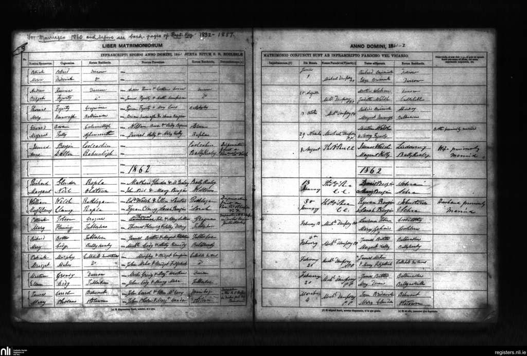 Durrow; County of Kilkenny, Laois; Diocese of Ossory. Marriages, June 1861 to Mar. 1862