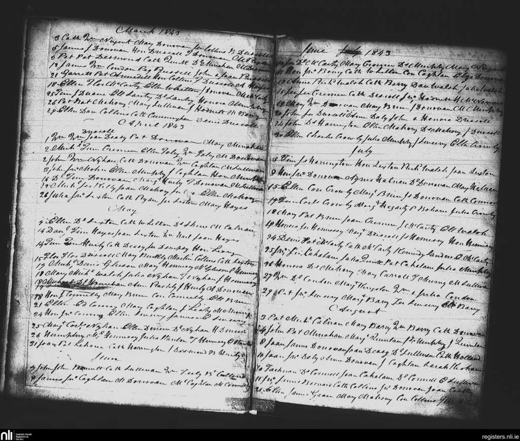 Timoleague; County of Cork; Diocese of Cork and Ross. Baptisms, Mar. 1843 to Aug. 1843